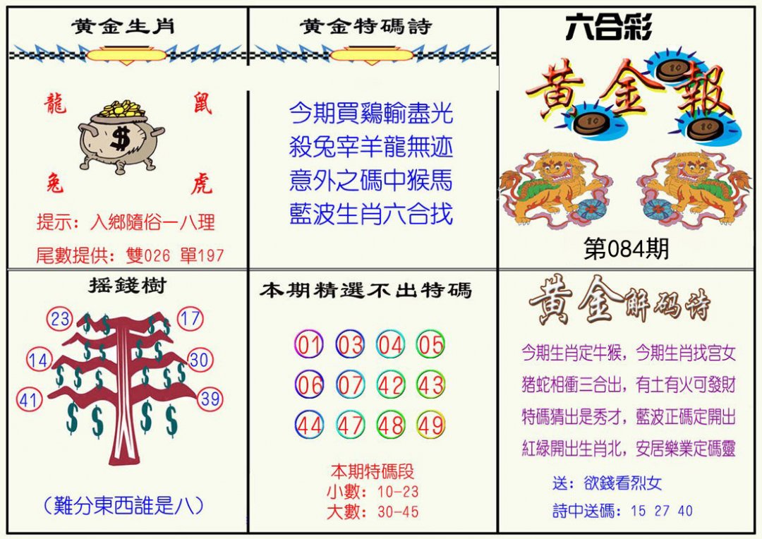 | 084期【虎狗蛇羊猴猪兔牛鼠】开?00 |